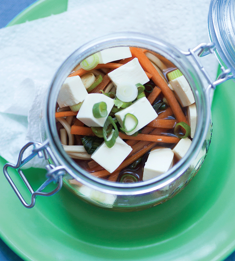 There’s something so immensely comforting about a big steaming bowl of Japanese-style noodles – sustaining and cleansing all in one hit. You can buy sachets of precooked noodles in most supermarkets, but if you can’t find them just cook some normal dried noodles beforehand. And tofu is a bit of a star on board as the little boxes store happily for months. This soup takes minutes to make yet delivers much on the flavour front. If you can’t find pak choi use asparagus instead, or use both if you want to increase your vegetable intake.
