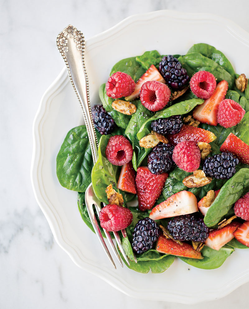 Mixed berry salad with poppy seed dressing and cinnamon almonds recipe