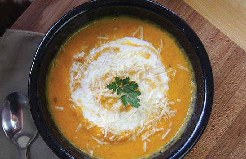- Add pumpkin, sweet potato, carrots and vegetable stock, stir then cover and simmer for 20 minutes.