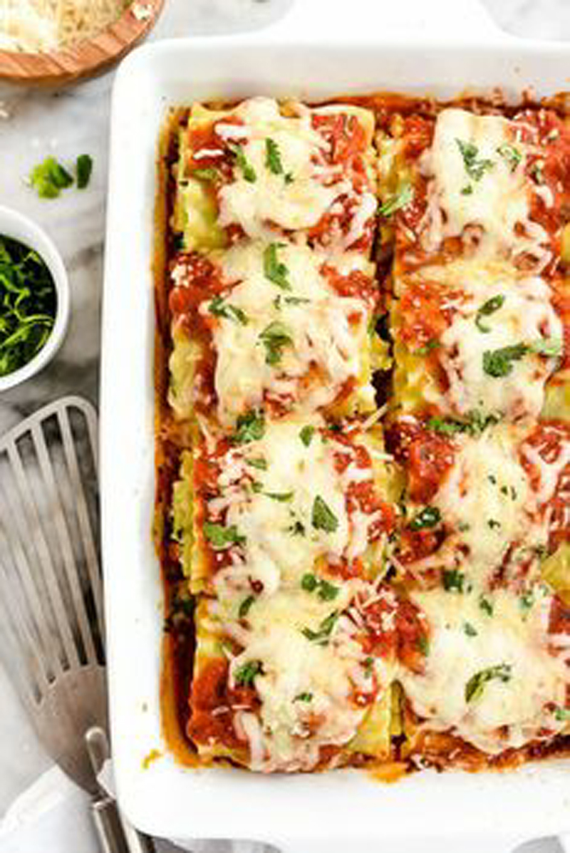 - Coat the baking dish with cooking spray and line with lasagna rolls.